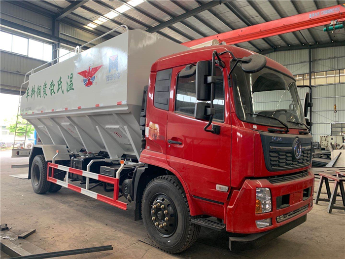 上裝罐體:罐體材質(zhì)采用4mm優(yōu)質(zhì)碳鋼板,整車3條絞龍,通過變速箱帶動取力器取力后帶動各絞龍工作,頂部絞龍用液壓控制舉升,可左右旋轉(zhuǎn)180°。罐體內(nèi)分為叁個倉,可以獨立控制各分倉卸料順序和速度。(備注:此報價為標配,國產(chǎn)電機,德力西電柜) 底盤配置:東風天錦駕駛室,康明斯180馬力,法士特小8檔變速箱,5000mm軸距,10.00R20,18PR鋼絲胎,電動門窗,中控鎖,ABS,方向助力,空調(diào)(油耗24L\100km)