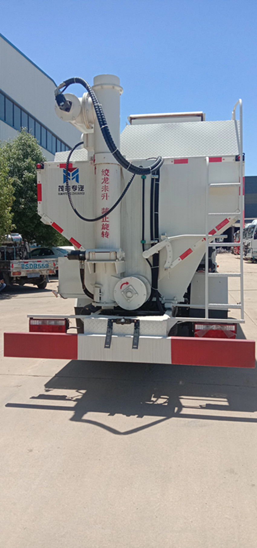 可獨立控制各分倉卸料順序和速度,整車3條蛟龍(底部水平絞龍、尾部垂直絞龍、頂部卸料絞龍),由取力器經車輛變速箱取力后,將動力傳動至高壓油泵以驅動液壓系統(tǒng)帶動各絞龍工作,或者由3個5.5kw 380v電機帶動各絞龍工作,頂部絞龍液壓控制舉升,可左右旋轉180°此車公告+環(huán)保+燃油齊全,全國上戶無憂!